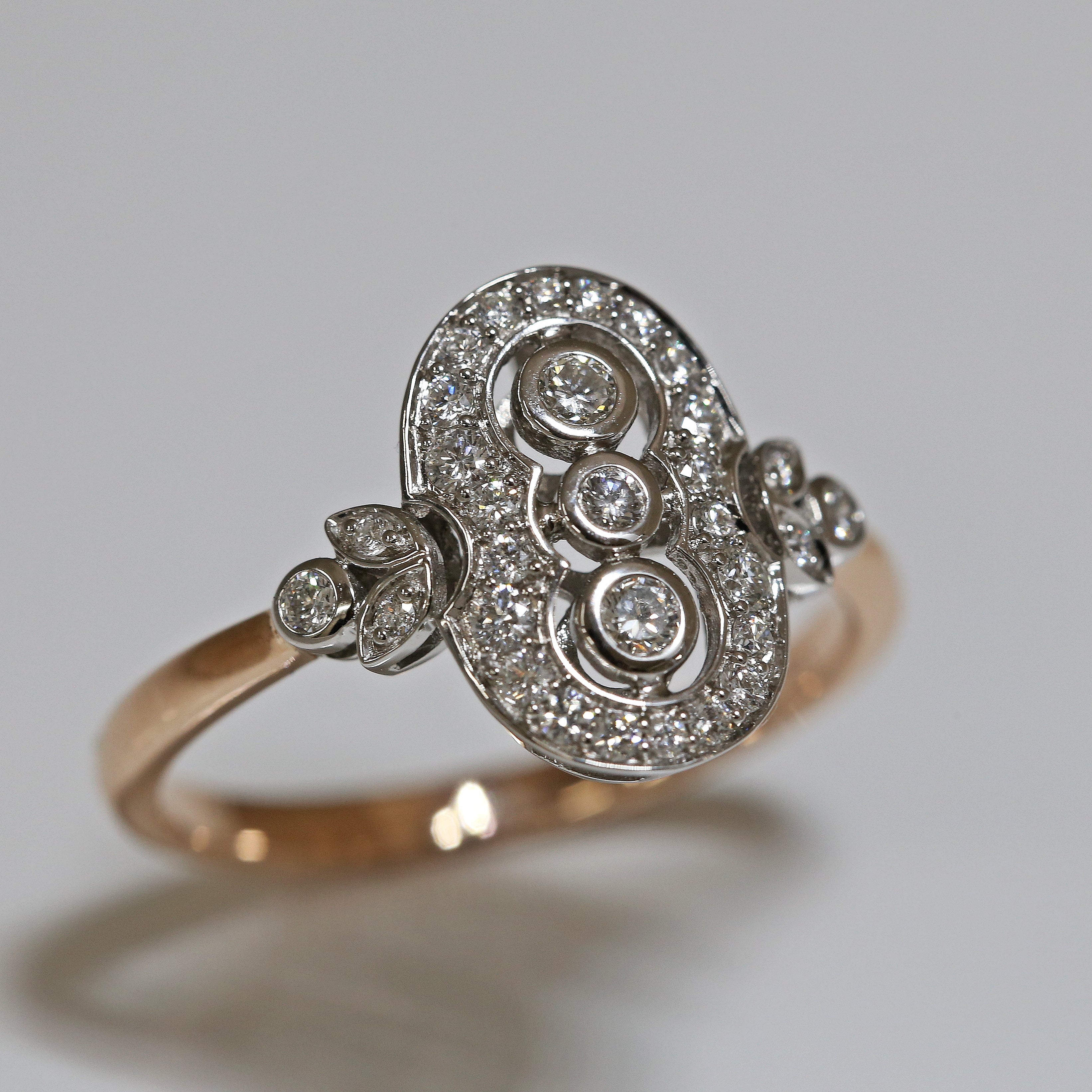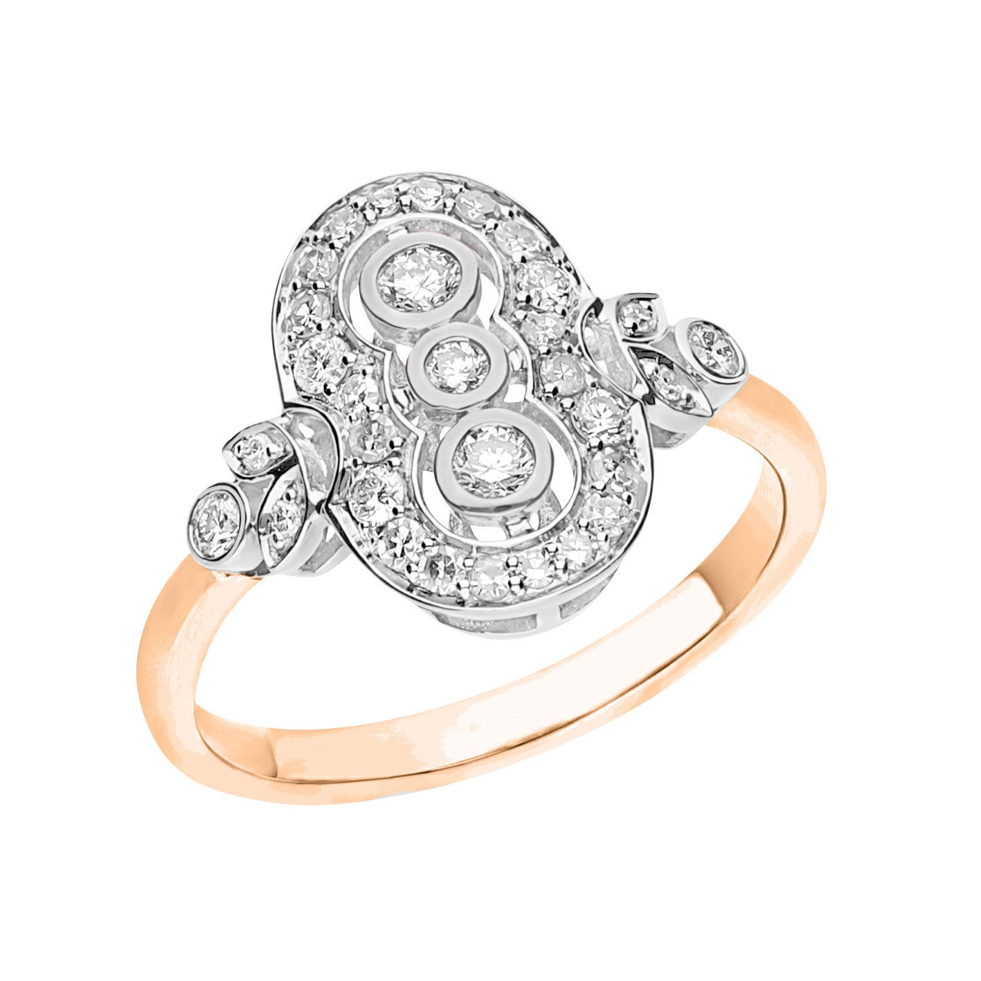 Art Deco style Rose gold and White gold ring set with 0.43ct of round-cut G/VS diamonds.