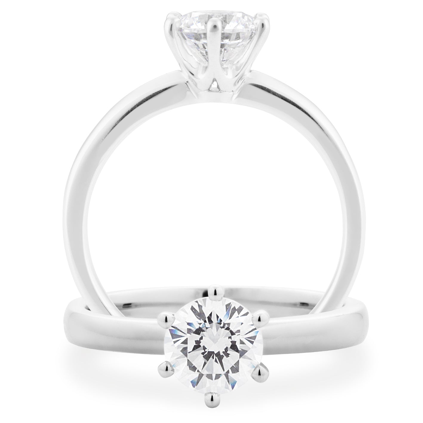 Platinum solitaire style diamond ring set with one G/VS 0.50ct round brilliant cut diamond.