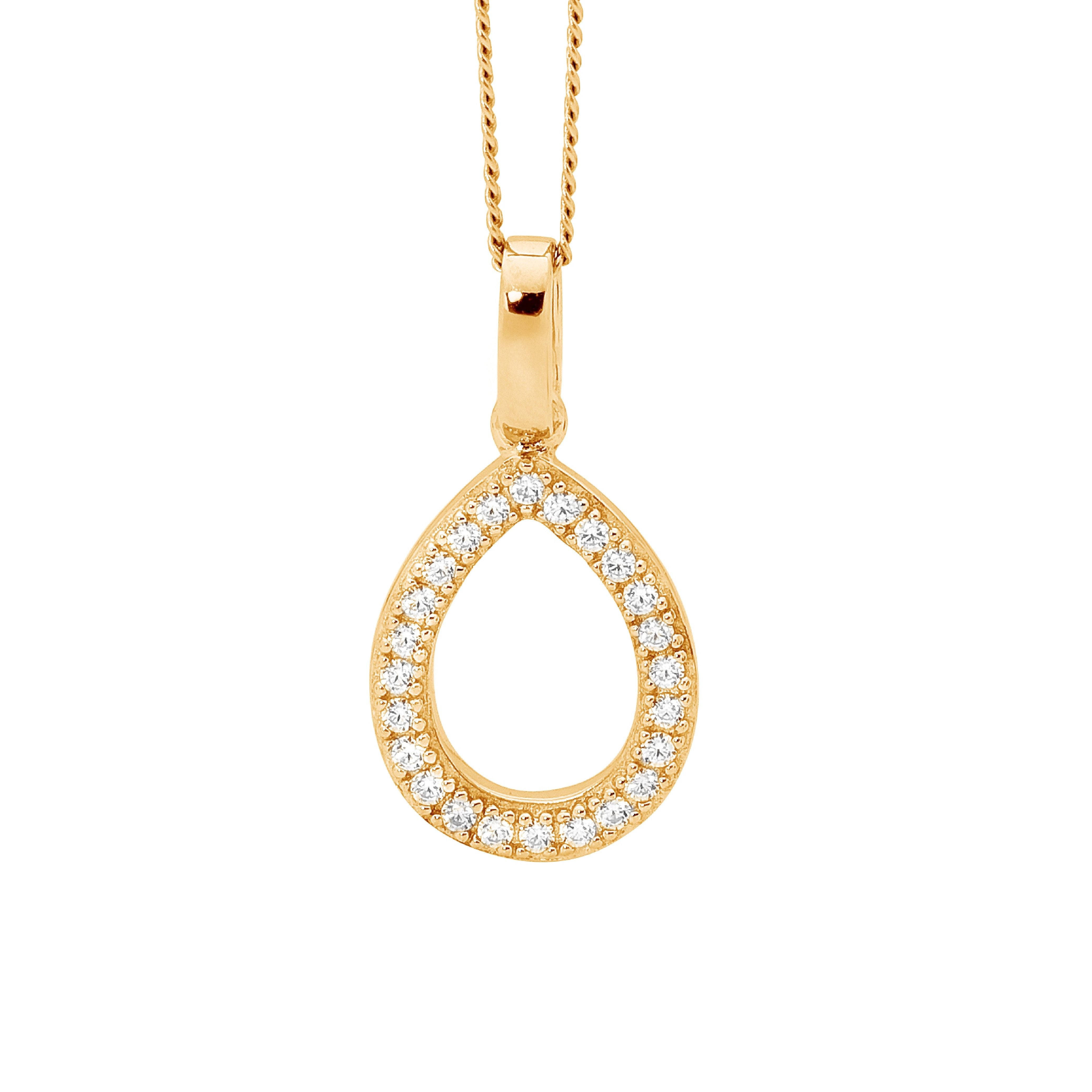 Sterling silver gold plated pear shaped pendant set with cubic zirconias on a 45cm gold plated chain.
