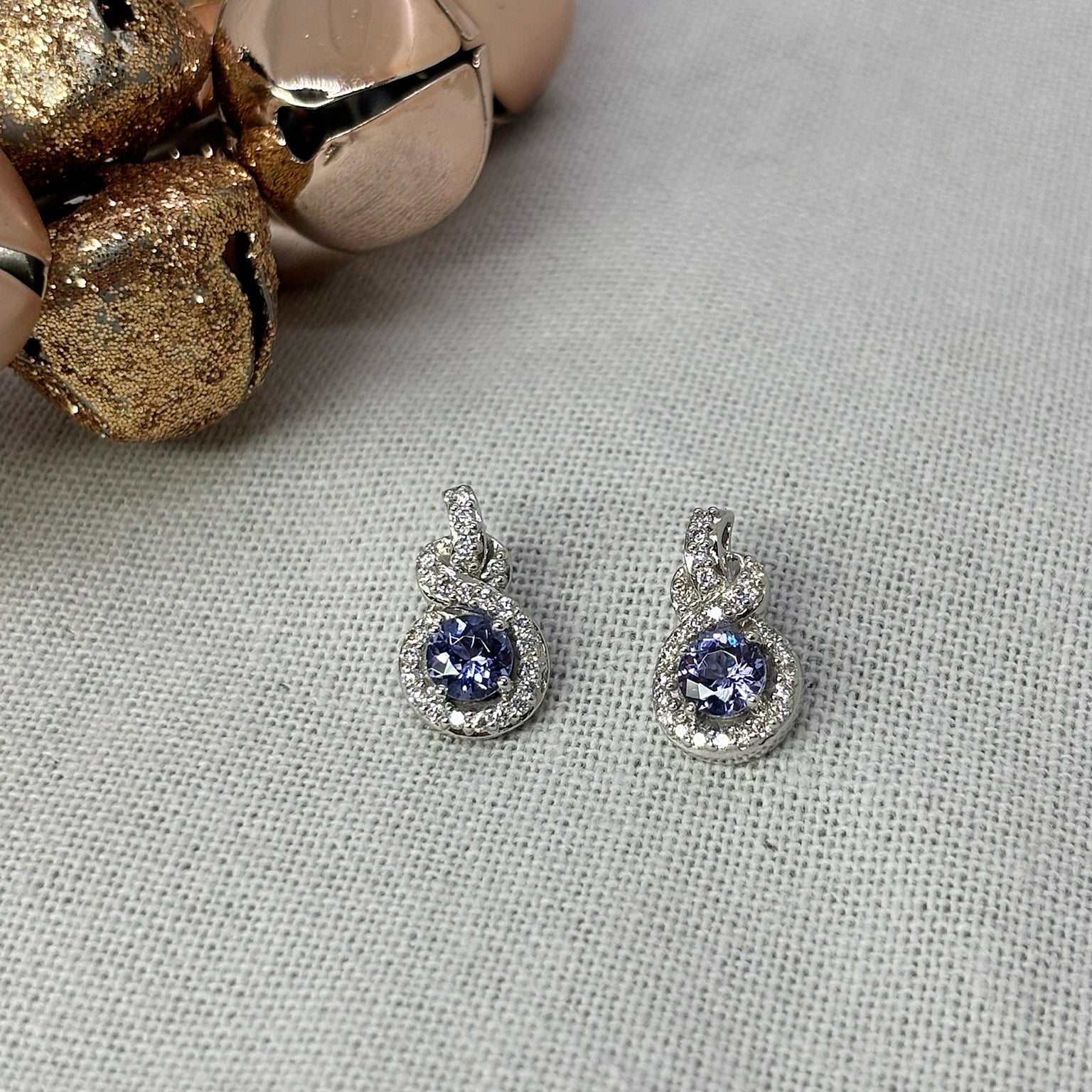 9ct White gold earrings claw set with 2=1.12ct round-cut Tanzanite's and 0.36ct of round-cut G/SI diamonds.