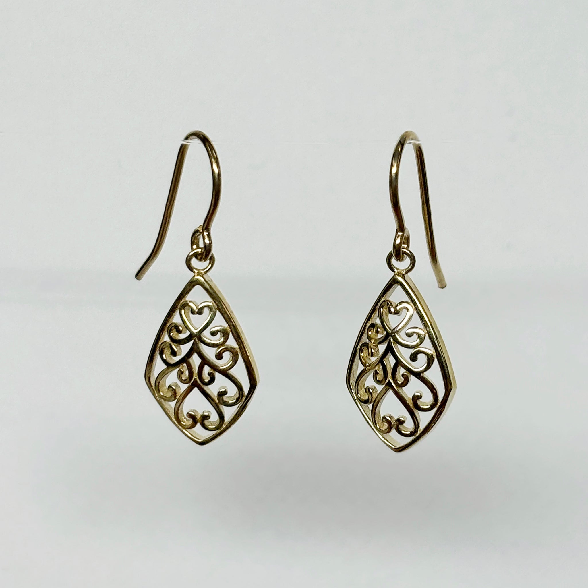9ct Yellow gold filigree drop earrings with shepherd hooks