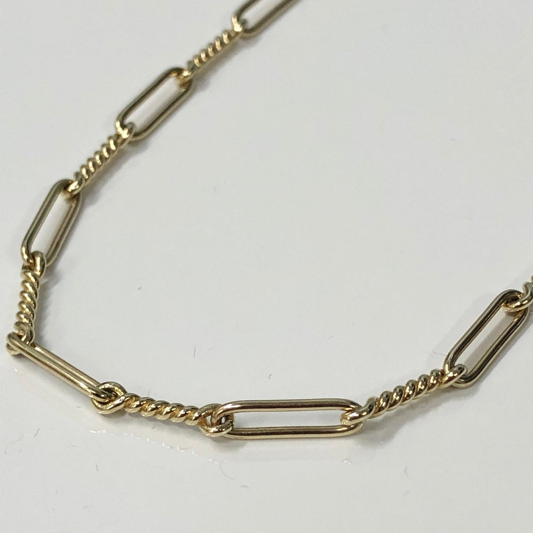 Australian Made 9ct Yellow Gold chain in alternating paperclip link and twist link. Chain measures a total of 50cm in length including the parrot beak clasp and weighs 14.27 grams.